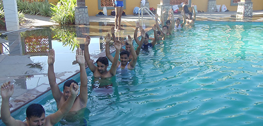 Dive into a unique experience with Spandayog Aqua Yoga, a distinctive offering that sets us apart. This one-of-a-kind practice, led by a select few yoga teachers, focuses on relaxation, healing, and fostering a sense of oneness. Enjoyed by individuals across age groups, from kids to senior citizens, Aqua Yoga provides a refreshing and rejuvenating way to connect with the benefits of yoga in a water environment.
